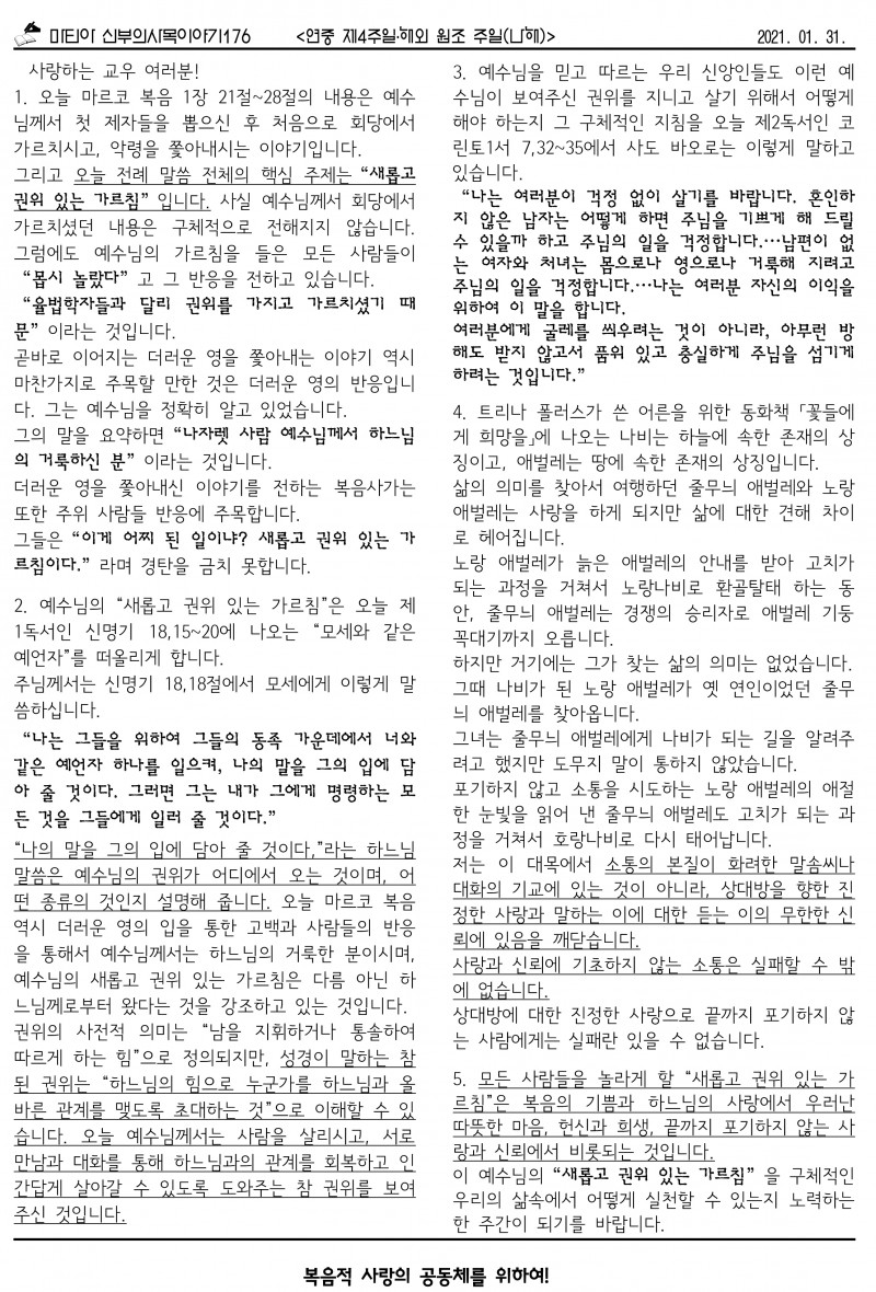 1월 31일(마티아 신부의 사목이야기 176) 최고관리자 2021.01.30 10:50 2,946 0 LV.20 21% - 첨부파일 : 20210131-7면.jpg (1.8M) - 다운로드 0 2021-01-30 10:50:52 - 첨부파일 : 20210131-7면_마티아신부의 사목이야기176_.pdf (221.7K) - 다운로드 3 2021-01-30 10:50:52 - 짧은주소 : http://www.yscatholic.com/bbs/?t=1mm 주소복사 × 짧은 글주소 복사 복사하기 Note! '복사하기' 버튼을 클릭하면 내 컴퓨터 클립보드에 복사됩니다. 이전글 다음글 목록 본문 1월 31일(마티아 신부의 사목이야기 176) 입니다. 댓글목록 0 등록된 댓글이 없습니다.