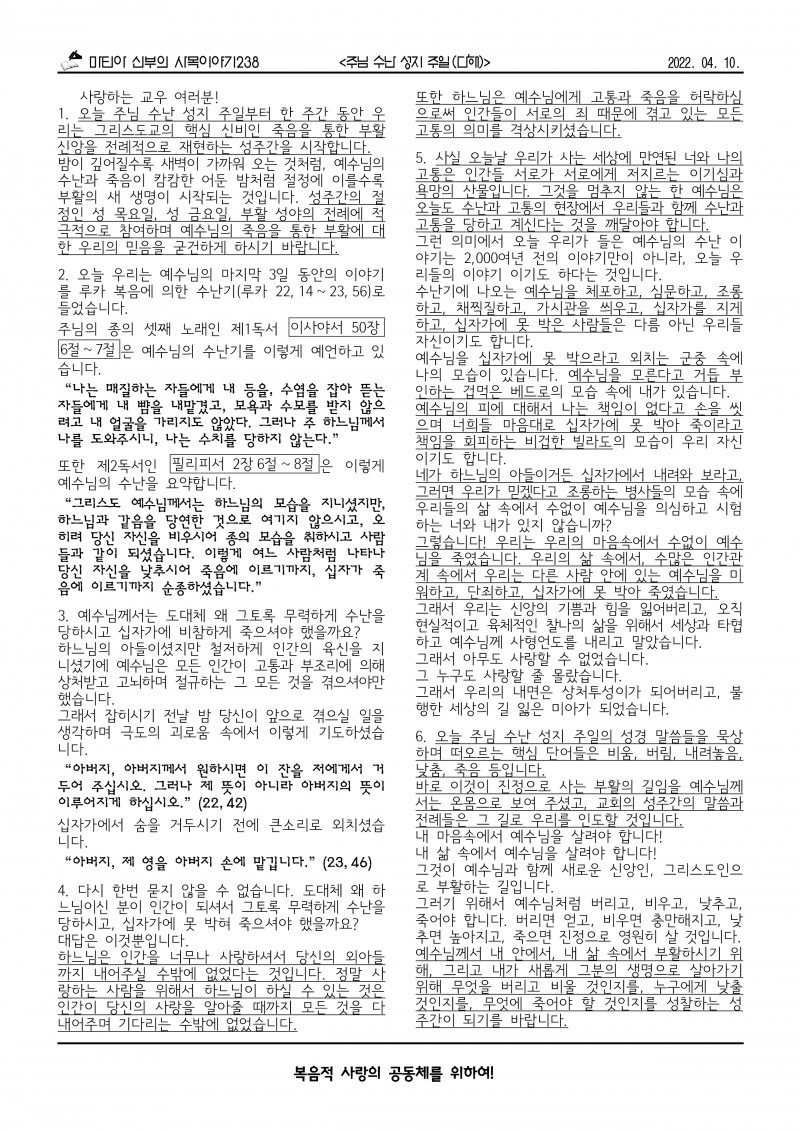 4월 10일(마티아 신부의 사목이야기 238) 최고관리자 2022.04.09 09:29 2,967 0 LV.20 21% - 첨부파일 : 20220410-7면마티아신부의 사목이야기238.pdf (225.3K) - 다운로드 3 2022-04-09 09:29:23 - 첨부파일 : 20220410-7면마티아신부의 사목이야기238.jpg (2.8M) - 다운로드 1 2022-04-09 09:29:23 - 짧은주소 : http://yscatholic.com/bbs/?t=1pG 주소복사 × 짧은 글주소 복사 복사하기 Note! '복사하기' 버튼을 클릭하면 내 컴퓨터 클립보드에 복사됩니다. 이전글 다음글 목록 본문 4월 10일(마티아 신부의 사목이야기 238) 입니다. 댓글목록 0 등록된 댓글이 없습니다.