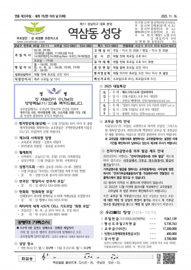 11월 16일(연중 제33주일 · 세계 가난한 이의 날) 본당 소식