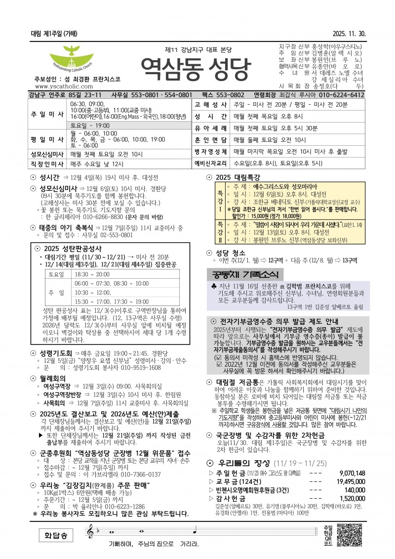 11월 30일(대림 제1주일) 본당 소식
