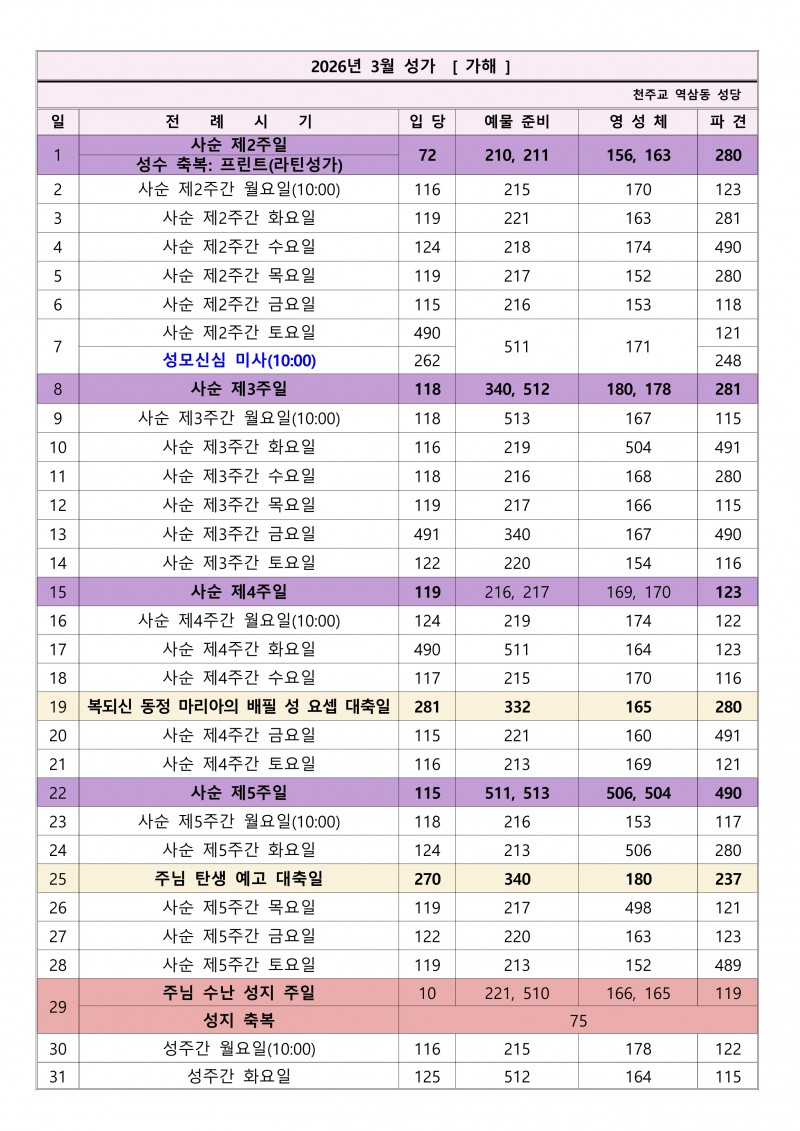- 첨부파일 : 2026년 3월 성가번호.jpg (979.2K) - 다운로드