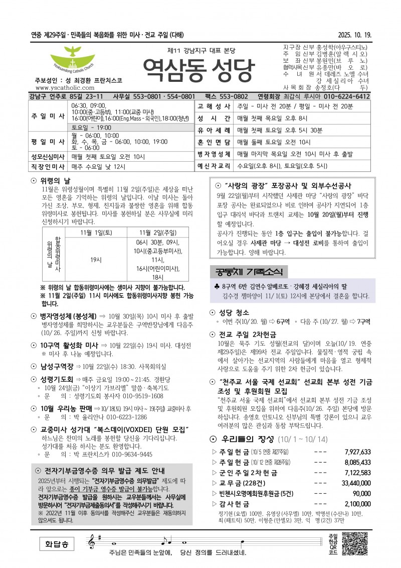 10월 19일(연중 제29주일 · 민족들의 복음화를 위한 미사 · 전교 주일) 본당 소식