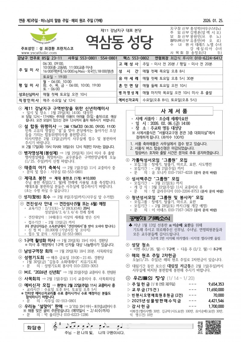 1월 25일(연중 제3주일 · 하느님의 말씀 주일 · 해외 원조 주일) 본당 소식